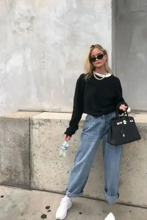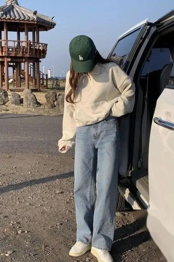 牛仔裤的接管:不错接管一些破洞牛仔裤,或者是阔腿牛仔裤,这么的牛仔裤大约为全体造型增添一些个性和时尚感。