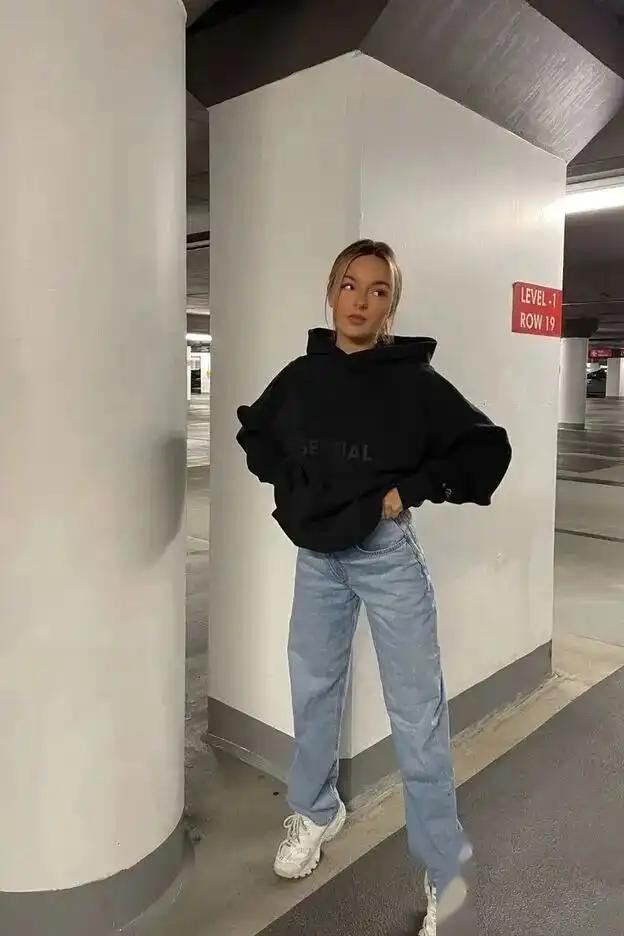 2. 连帽卫衣+牛仔裤