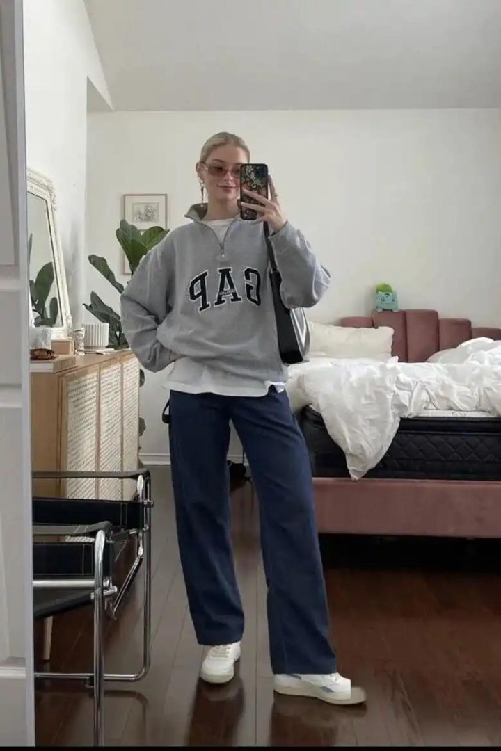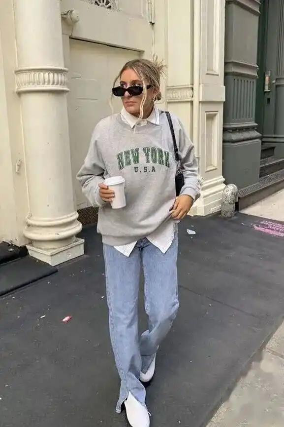 1. 圆领卫衣+牛仔裤