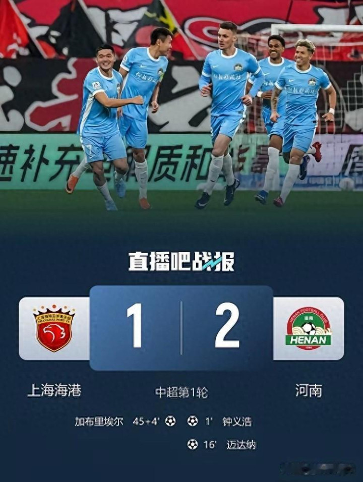 昨夜上海海港1:2输拨河南队,