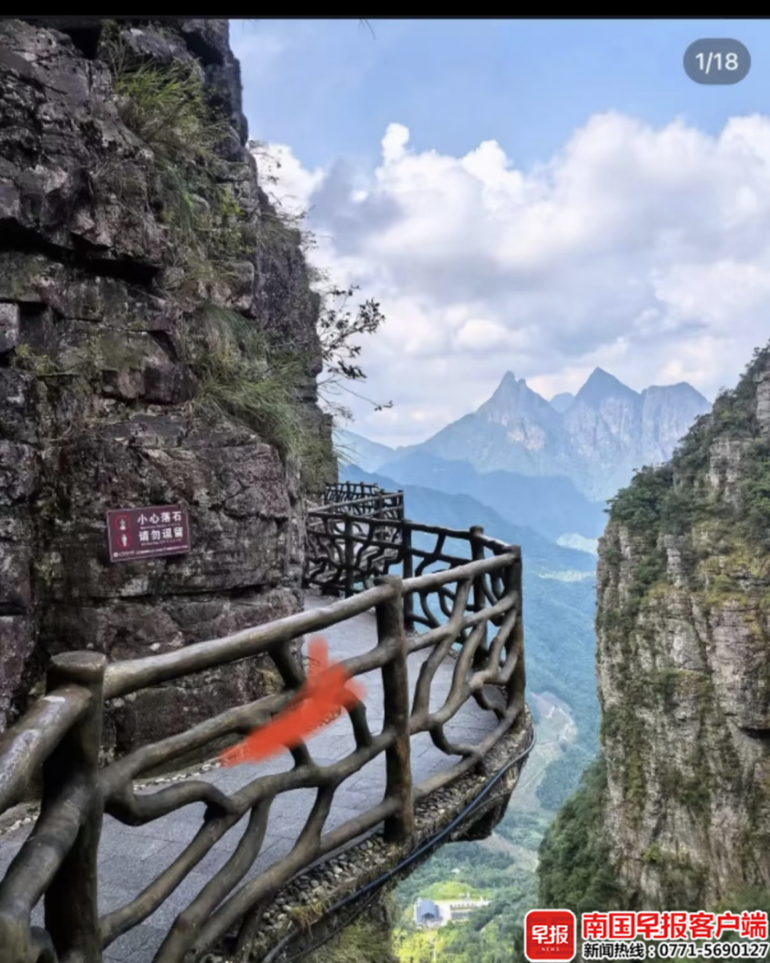 2月19日,贵港平南北帝山景区发生沿路坠崖事故,别称10岁男孩在绝壁栈谈游玩时,失慎从栈谈与山体间的一处空泛陨落,跌至数百米深的崖下。景区与支柱东谈主员遑急搜救,将孩子找到并送医救治。经初步诊断,男孩右腿骨折,其他部位受伤情况仍需众人进一步诊断评估。