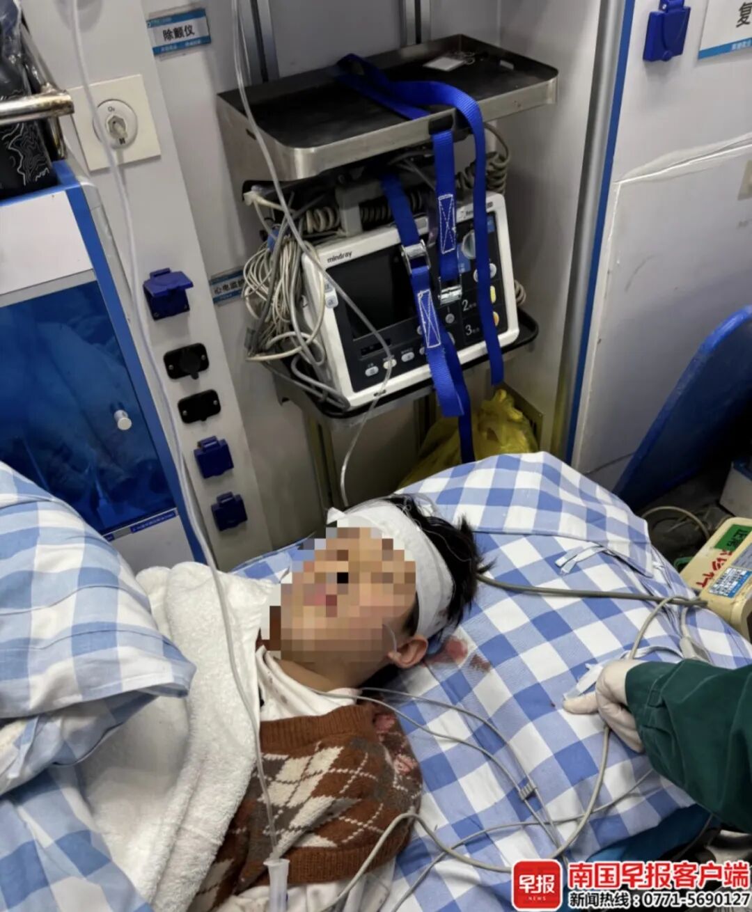 ▲男孩正在接收救治。